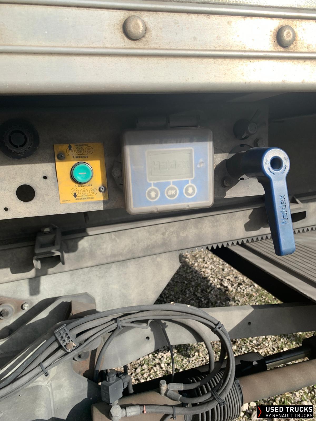 SEMI FRUEHAUF / 3 ESSIEUX / PREMIER ESSIEU RELEVABLE / SYSTEME DE GESTION HALDEX / FERMETURE ARRIERE PAR RIDEAU FIT / HAYON RETRACTABLE DHOLLANDIA 2,5 T / 2 RAILS D ARRIMAGE / PLANCHER BOIS OMEGA /