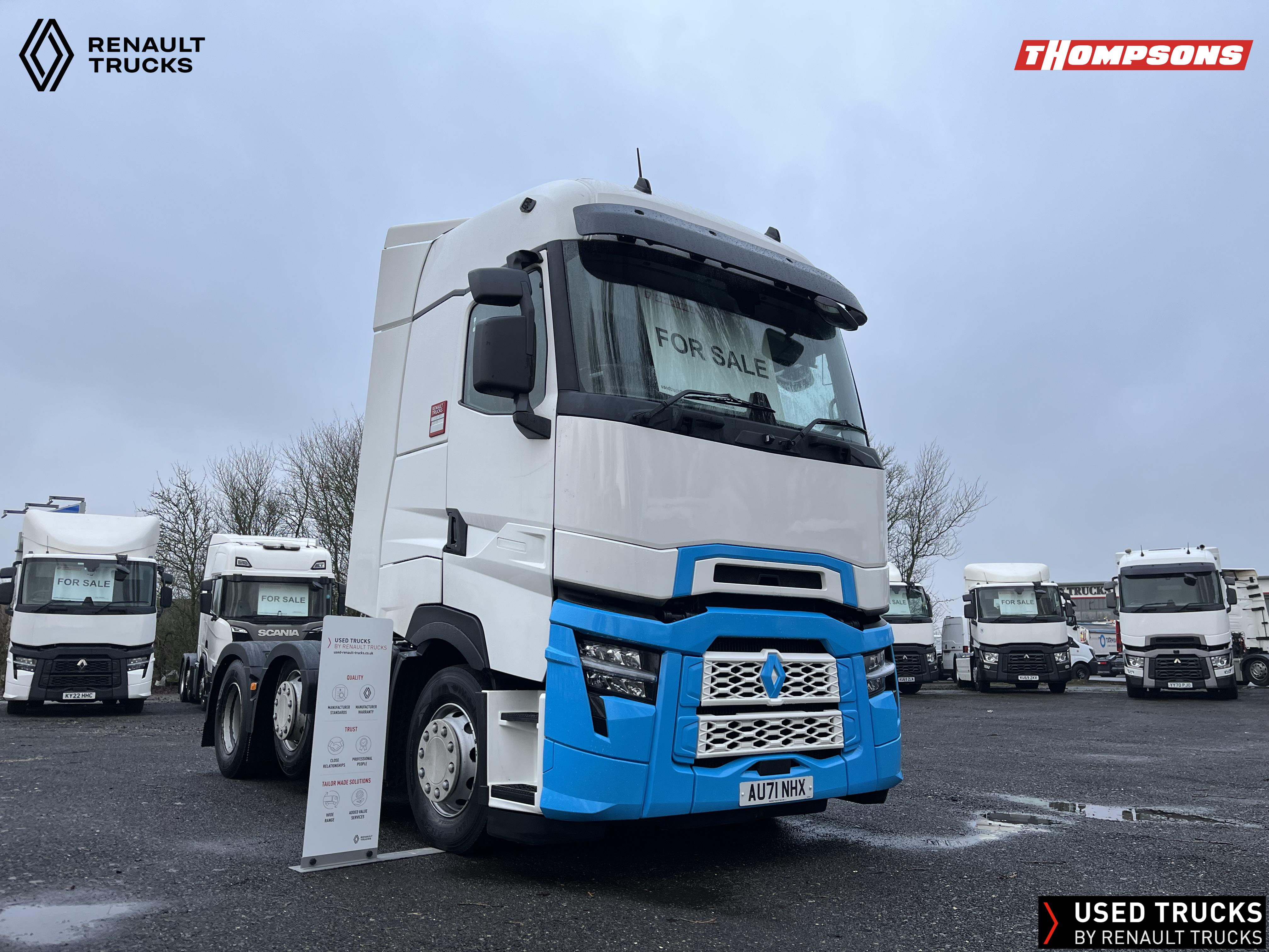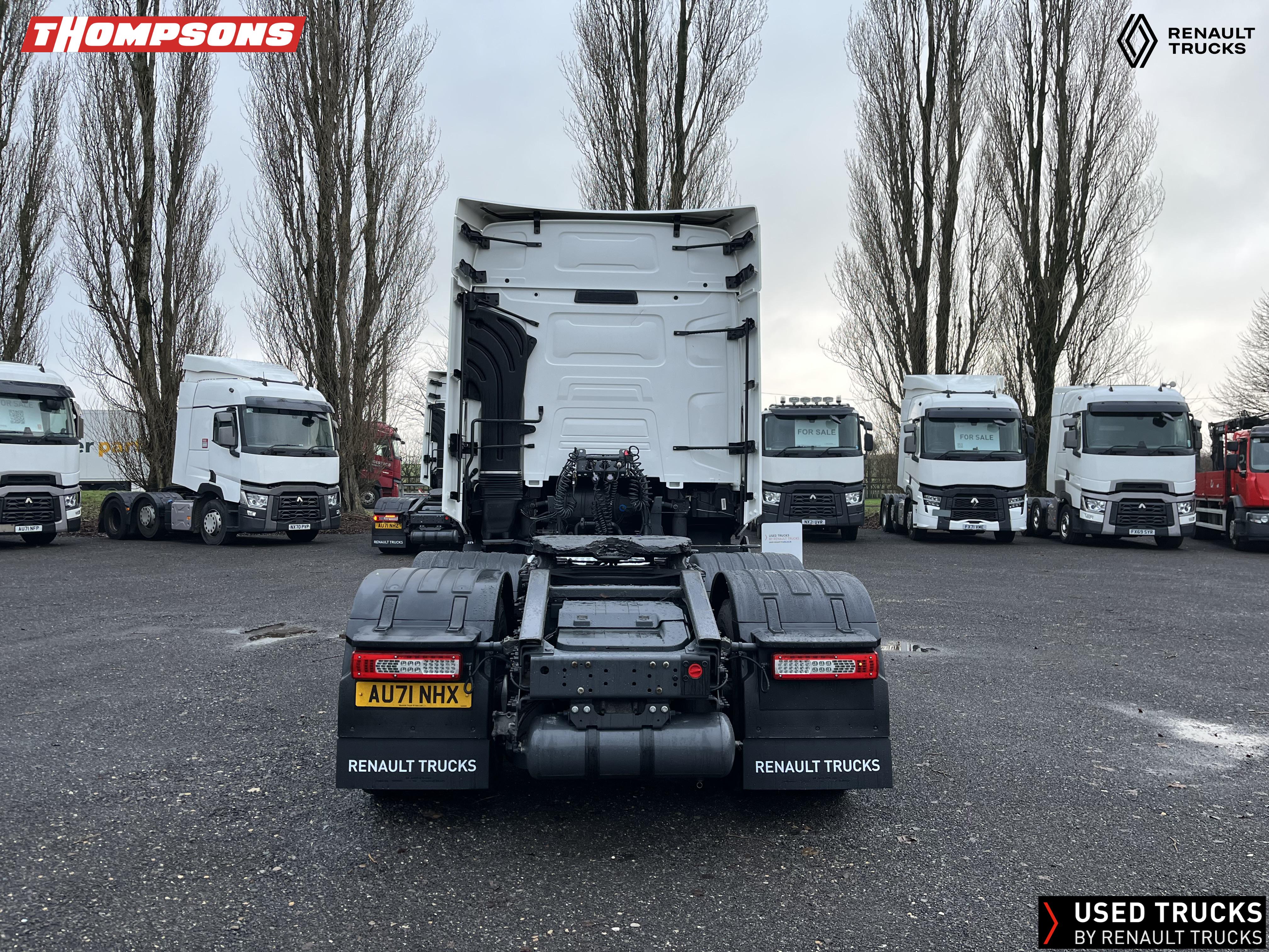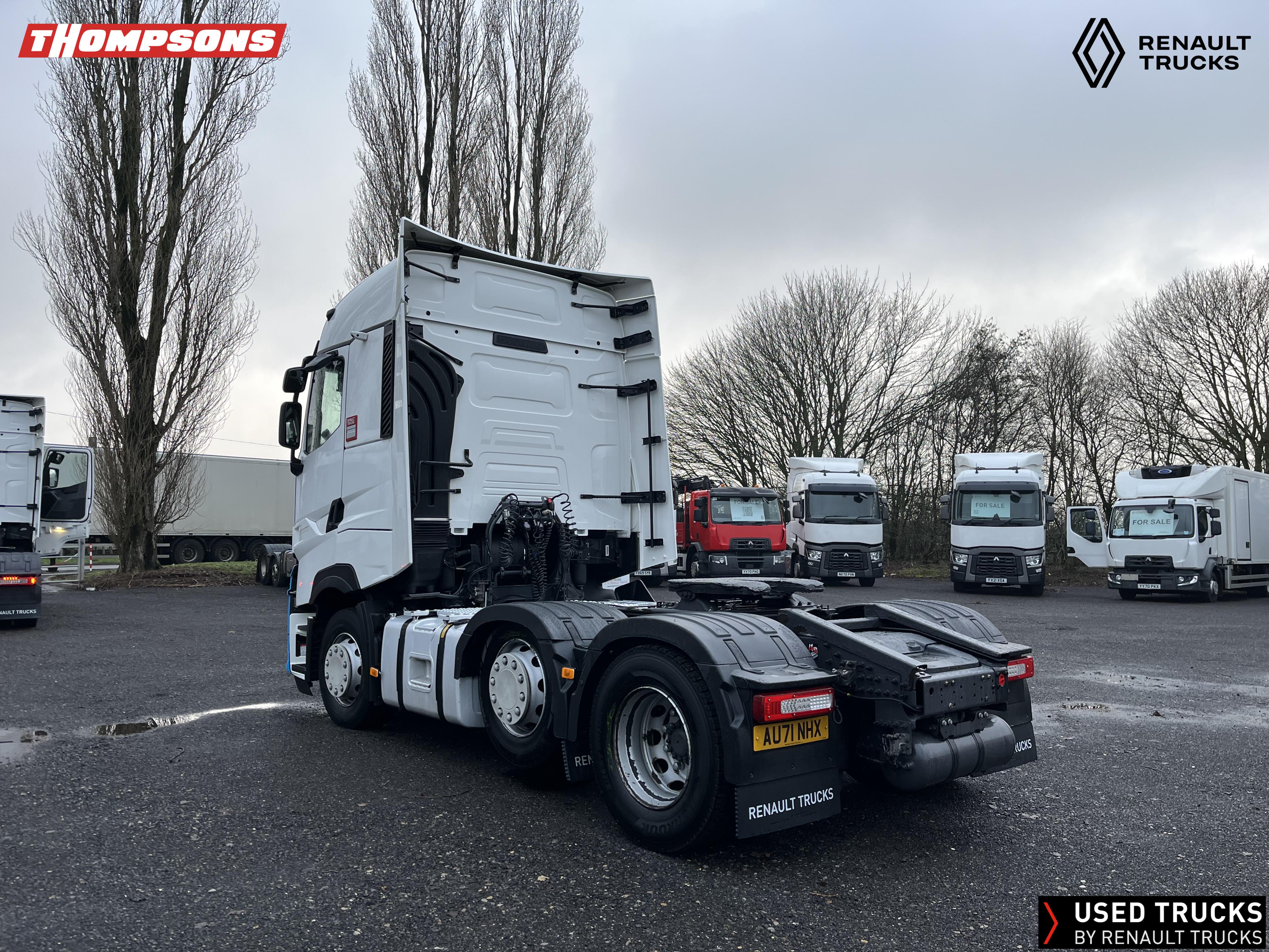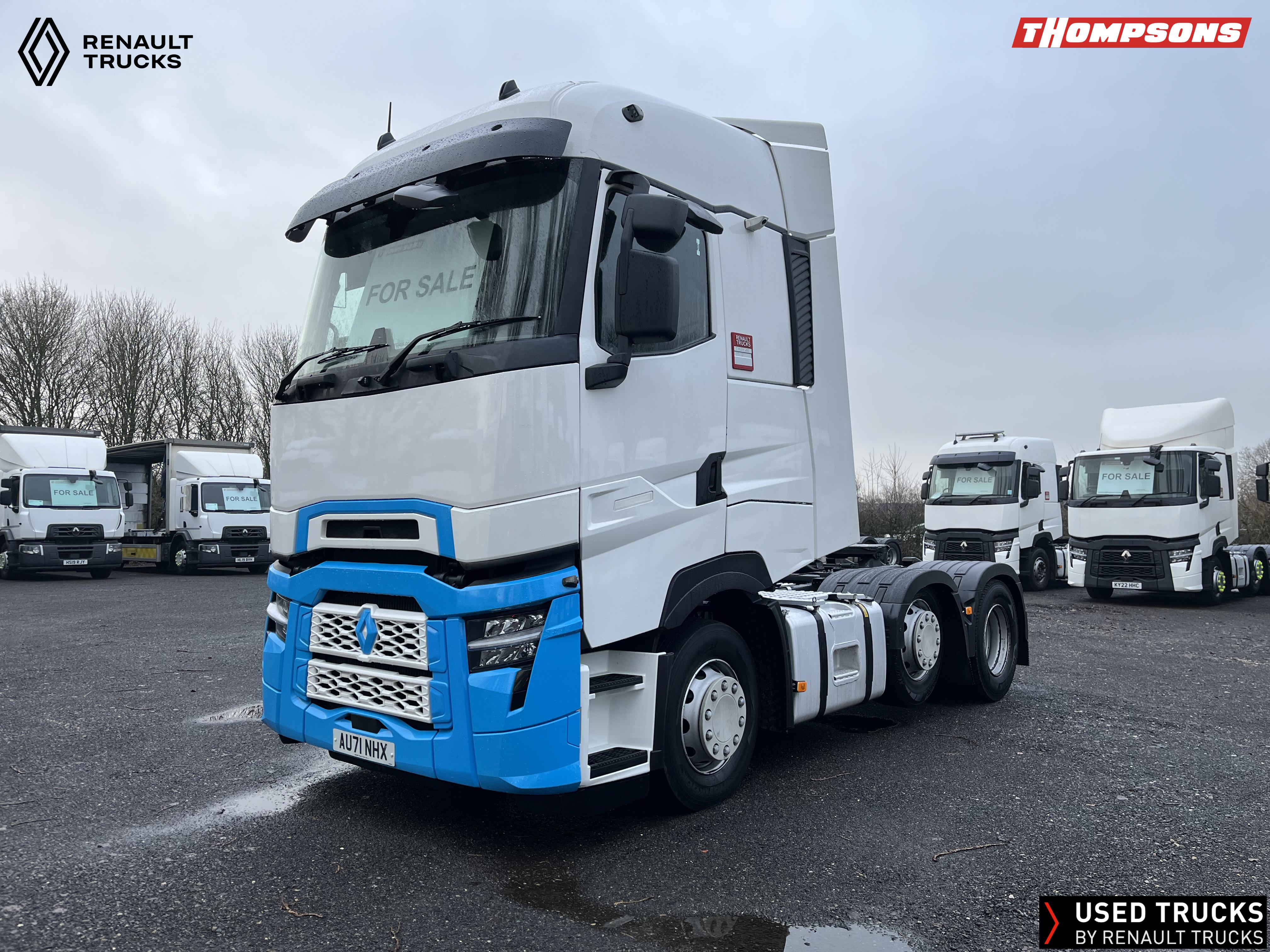 2021 (71) Renault T HIGH Evolution 480.26 TML 6x2 Tractor Unit. Maintained on a Renault Full Repair & Maintenance Contract with just 503,933kms. T HIGH Flat Floor Sleeper Cab, 13 LTR 480 BHP Euro 6 Engine & Automatic Gearbox, Engine Brake, 4-Point Cab Air Suspension, Sun visor, Cruise Control with Optiroll, Lane Departure Warning System, Emergency Brake Assist, Electronically Regulated Comfort Air Conditioning, Full Air Deflector Kit, Electric Windscreen Sunblind, Drawer under Bunk with 40 Litre Fridge, LED Cab Lighting, Remote Control in Bunk Area for Cab Controls, FM/DAB+ Radio with Bluetooth, USB Port & Jack Socket, 4 Loudspeakers & 2 Tweeters. One-Touch Electric Windows, 12/24V Sockets, Sliding 5th Wheel, LED Rear Lights, LED Day Running Lights & LED Work Light, Front Fog Lights, Automatic Lights & Wipers.