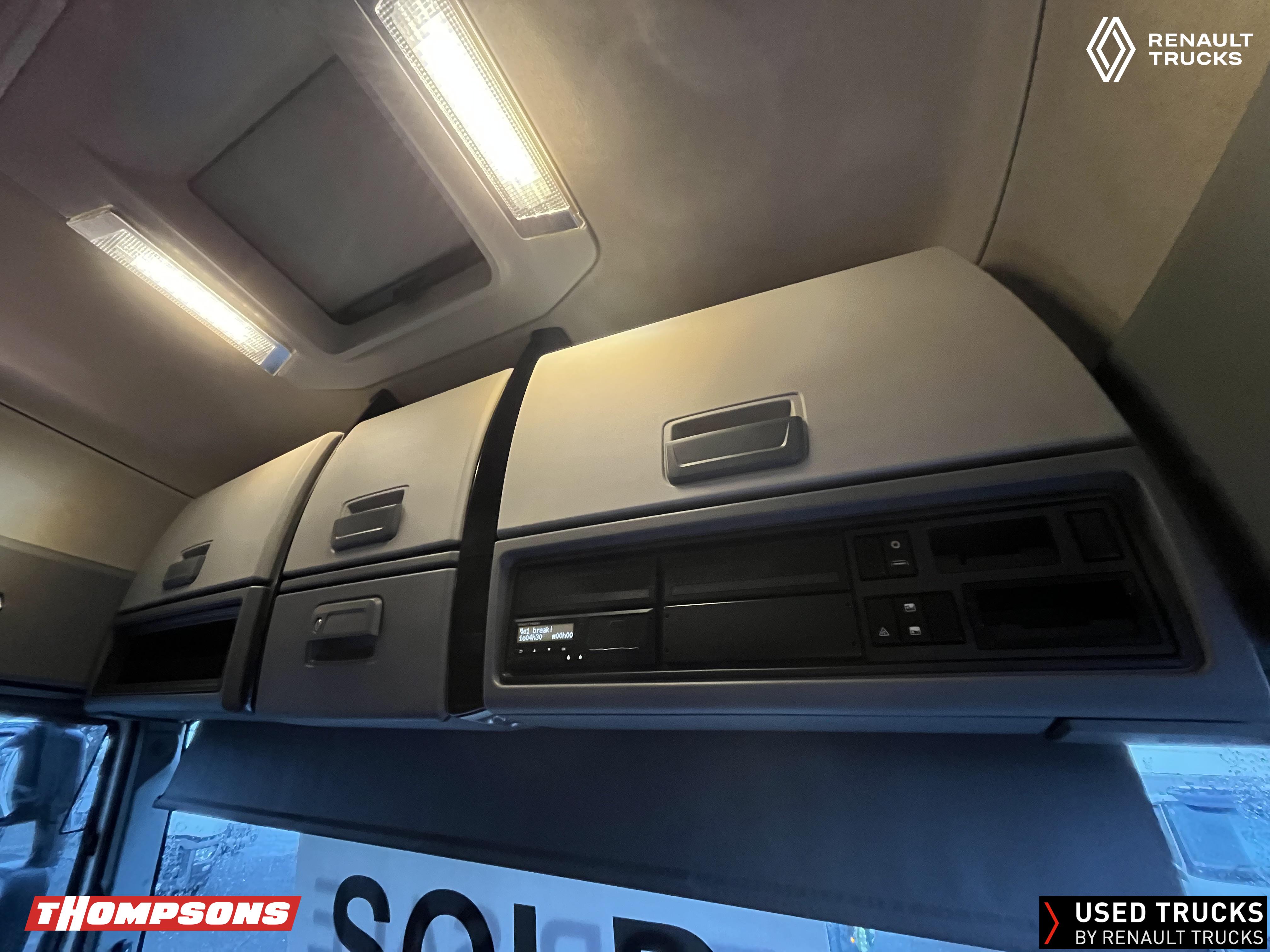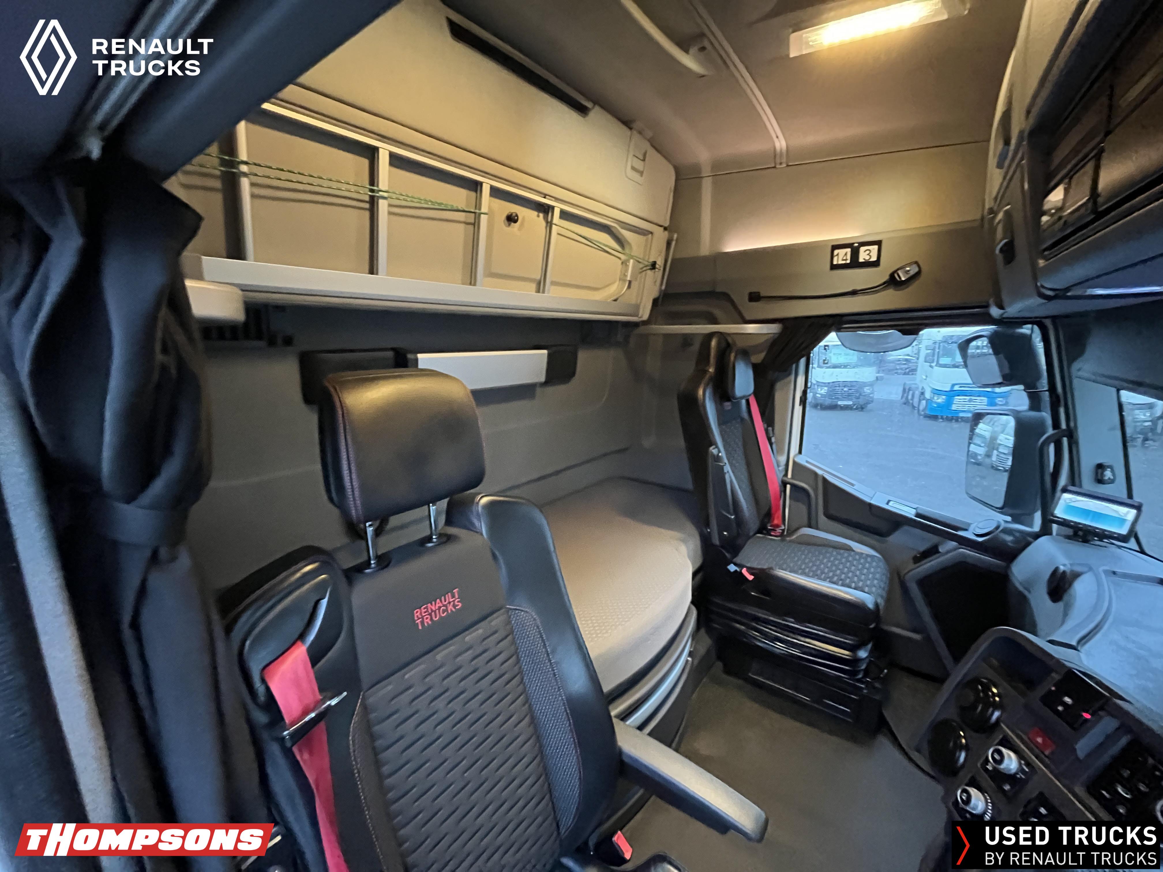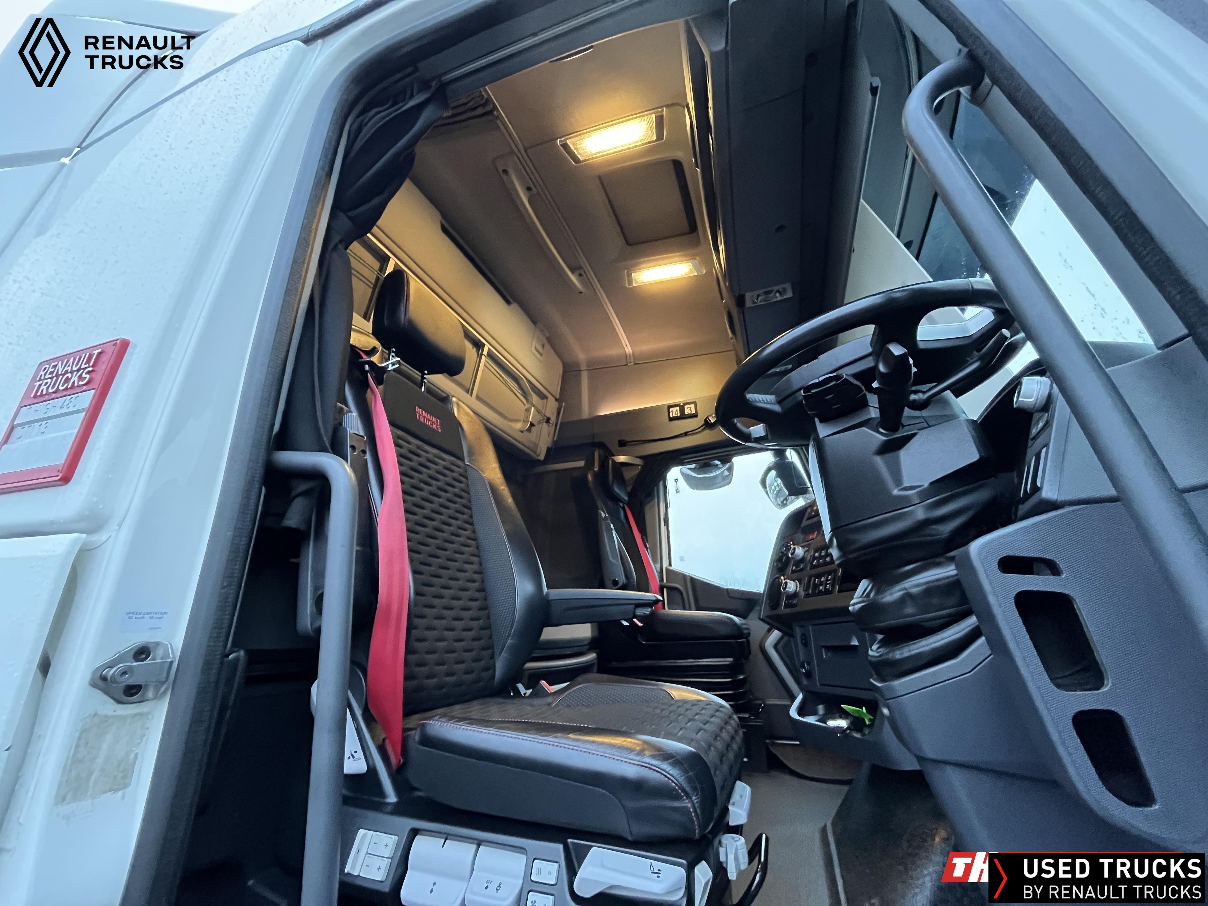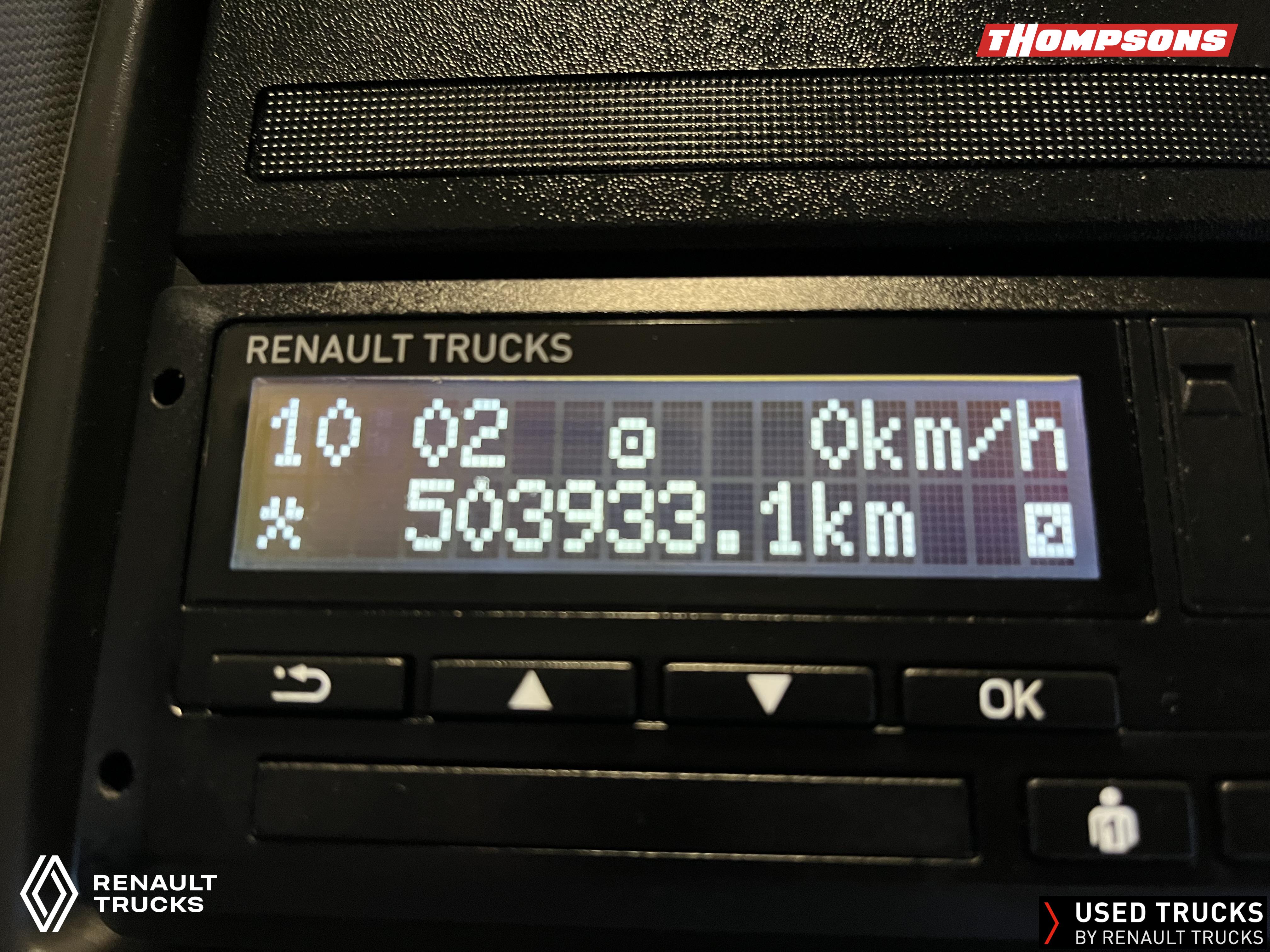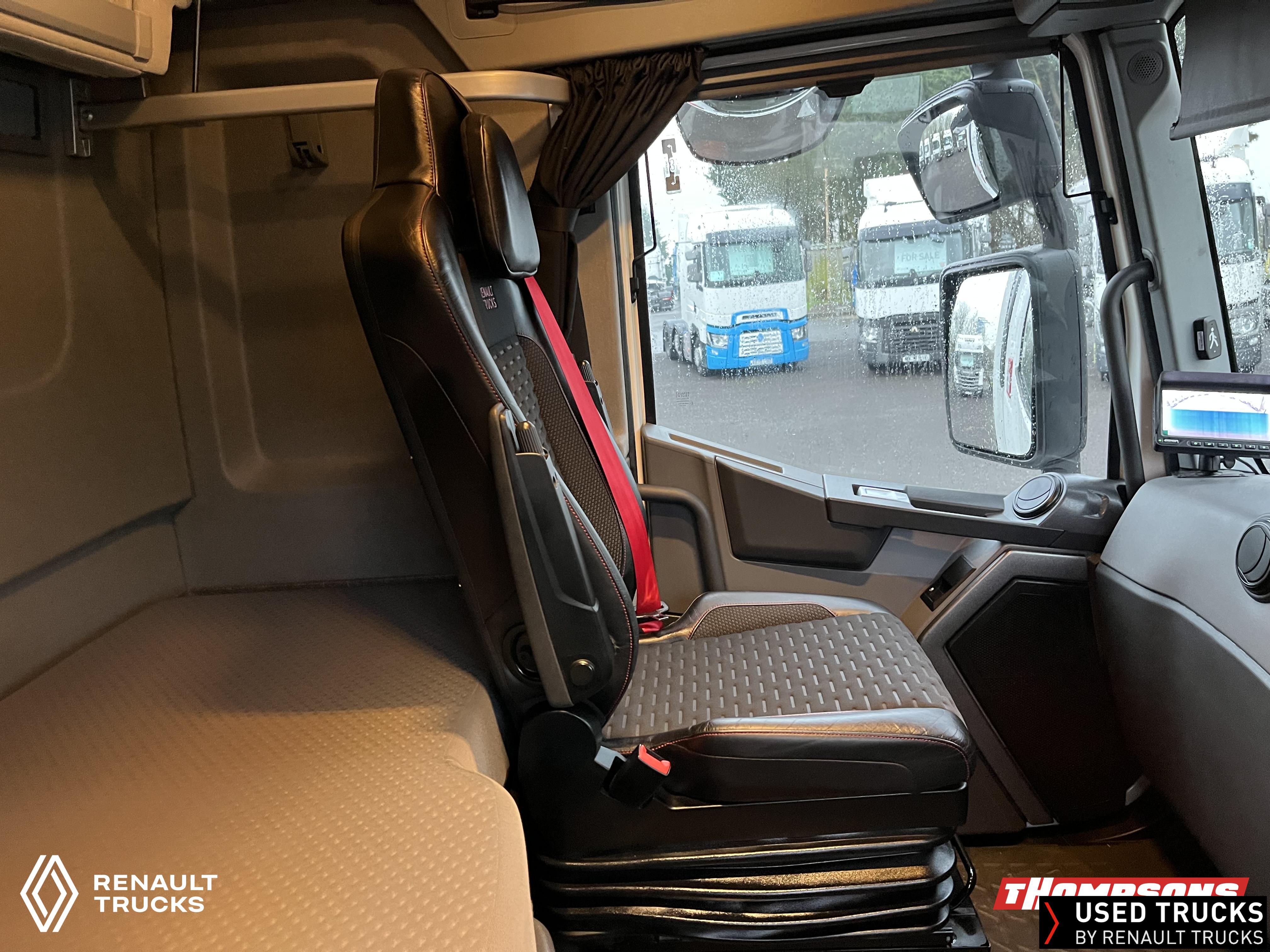 2021 (71) Renault T HIGH Evolution 480.26 TML 6x2 Tractor Unit. Maintained on a Renault Full Repair & Maintenance Contract with just 503,933kms. T HIGH Flat Floor Sleeper Cab, 13 LTR 480 BHP Euro 6 Engine & Automatic Gearbox, Engine Brake, 4-Point Cab Air Suspension, Sun visor, Cruise Control with Optiroll, Lane Departure Warning System, Emergency Brake Assist, Electronically Regulated Comfort Air Conditioning, Full Air Deflector Kit, Electric Windscreen Sunblind, Drawer under Bunk with 40 Litre Fridge, LED Cab Lighting, Remote Control in Bunk Area for Cab Controls, FM/DAB+ Radio with Bluetooth, USB Port & Jack Socket, 4 Loudspeakers & 2 Tweeters. One-Touch Electric Windows, 12/24V Sockets, Sliding 5th Wheel, LED Rear Lights, LED Day Running Lights & LED Work Light, Front Fog Lights, Automatic Lights & Wipers.