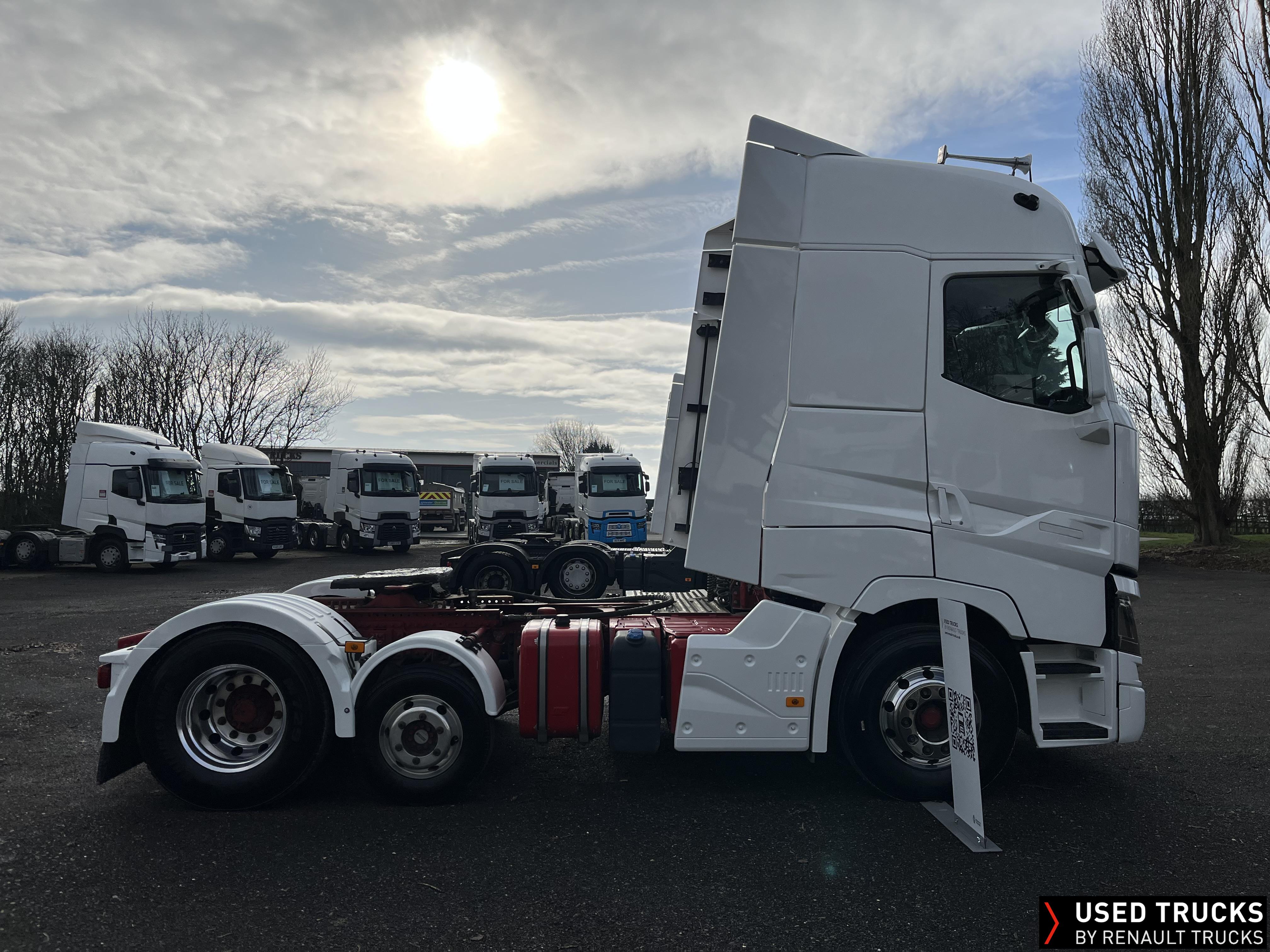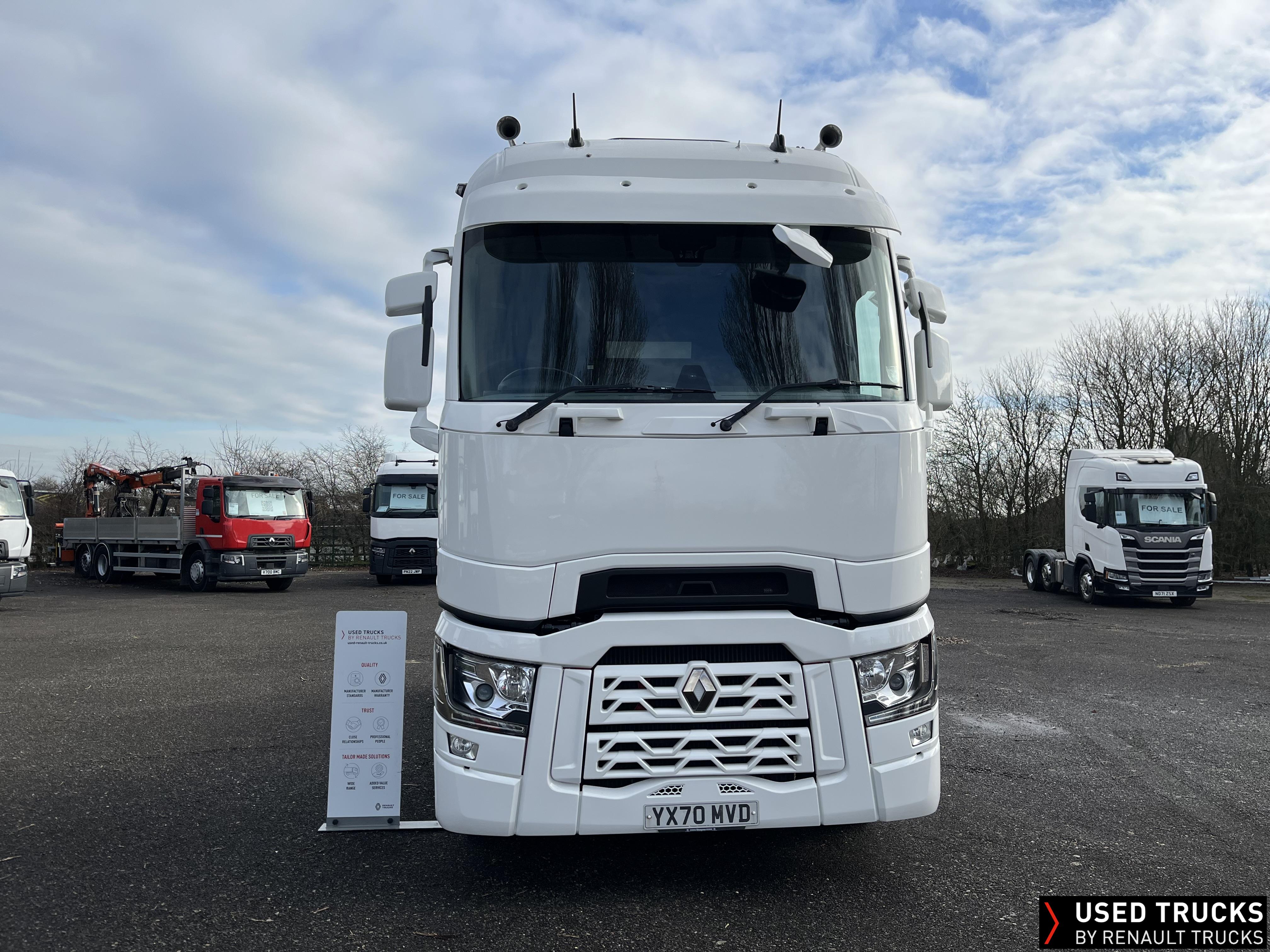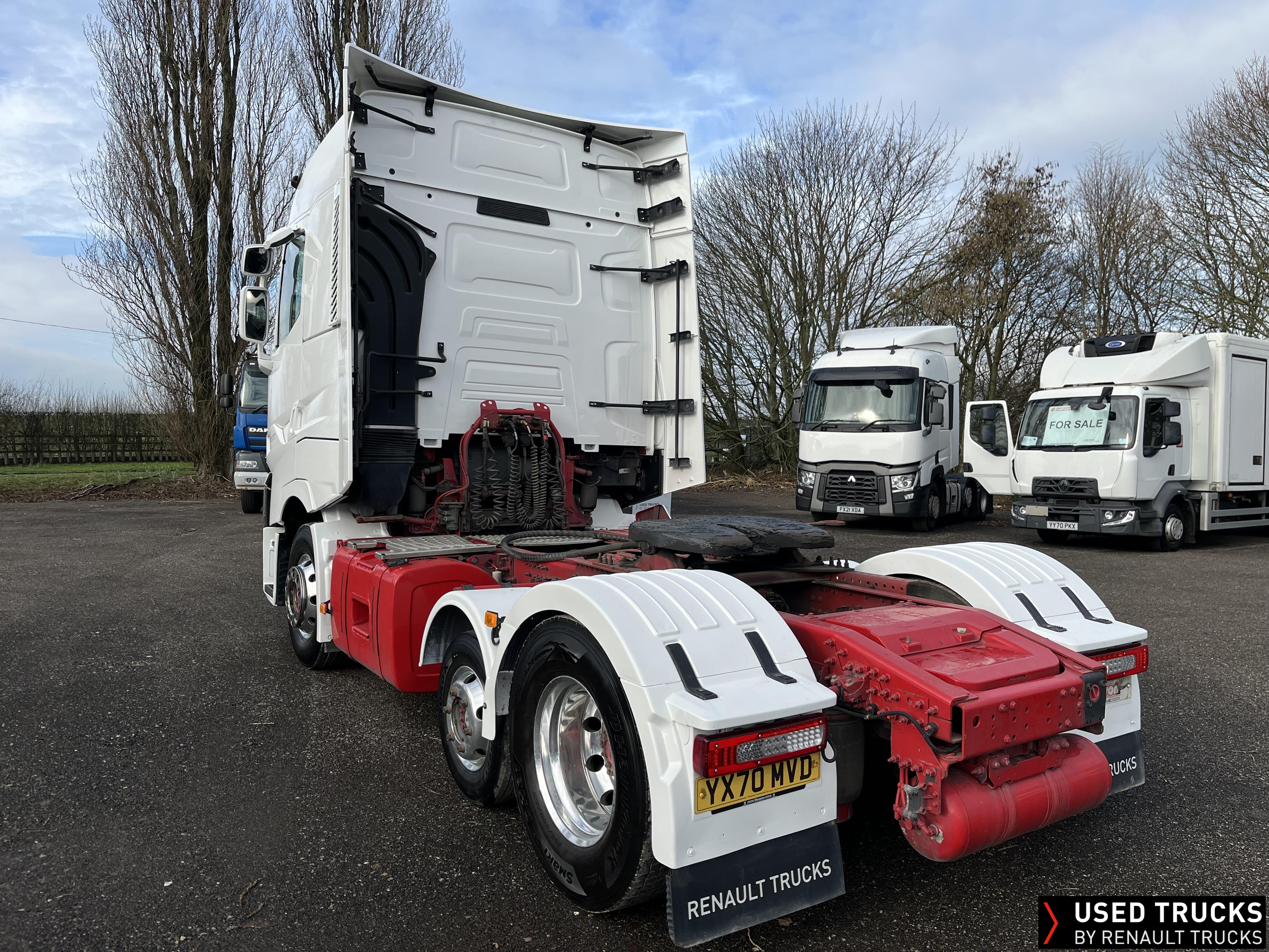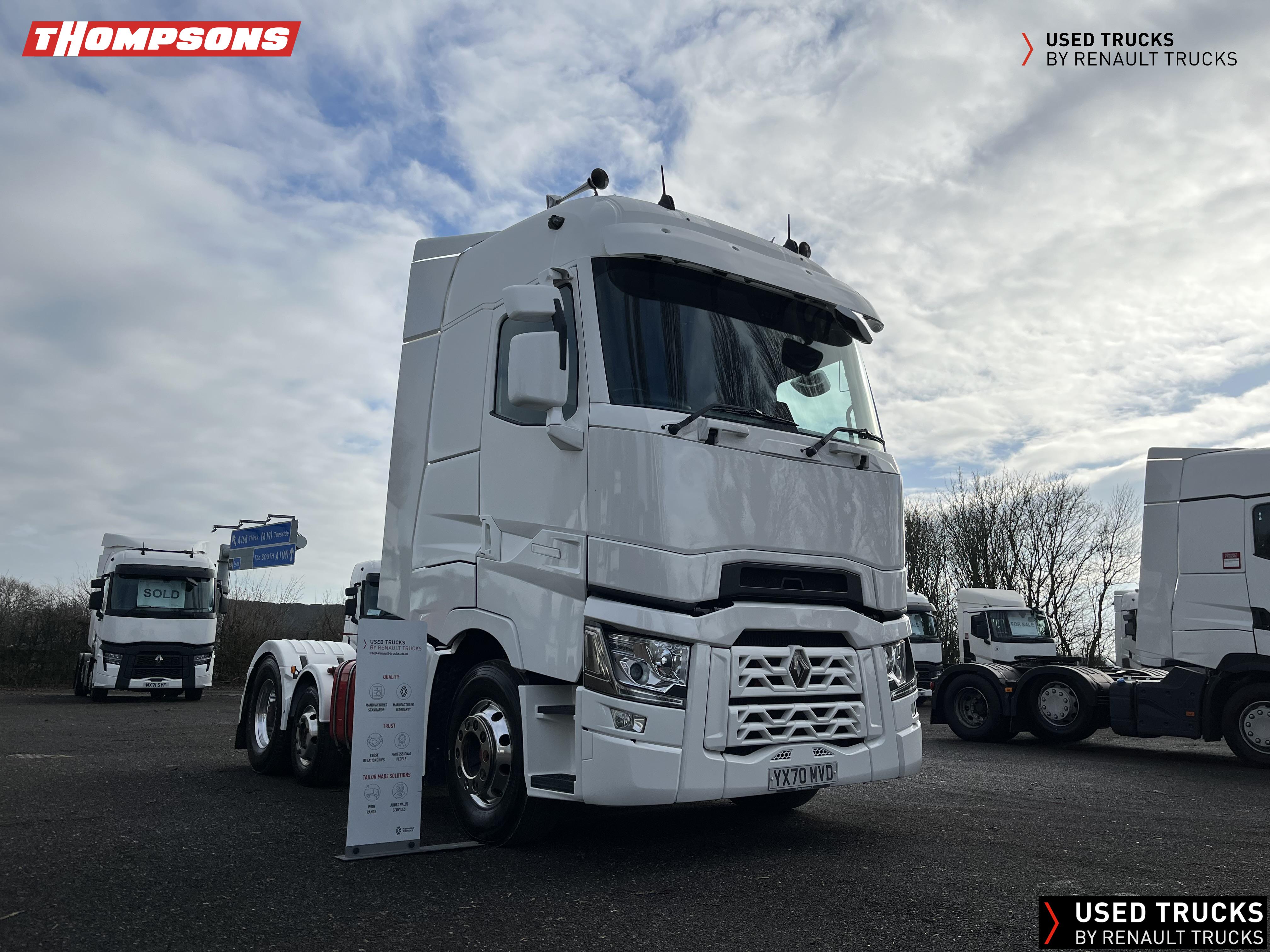2020 (70) Renault T HIGH 520.26 TML 6x2 Tractor Unit, With just 490,173kms. T HIGH Flat Floor Sleeper Cab, 13 LTR 520 BHP Euro 6 Engine & Automatic Gearbox, Engine Brake, 4-Point Cab Air Suspension, Sun visor, Cruise Control with Optiroll, Lane Departure Warning System, Emergency Brake Assist, Electronically Regulated Comfort Air Conditioning, Full Air Deflector Kit, Electric Windscreen Sunblind, Invertor, Drawer under Bunk with 40 Litre Fridge, LED Cab Lighting, Remote Control in Bunk Area for Cab Controls, FM/DAB+ Radio with Bluetooth, USB Port & Jack Socket, 4 Loudspeakers & 2 Tweeters. One-Touch Electric Windows, 12/24V Sockets, Fixed 5th Wheel, LED Rear Lights, LED Day Running Lights & LED Work Light, Front Fog Lights, Automatic Lights & Wipers. Fitted with Harsh Tipping Hydraulics, Alcoa Alloy Wheels