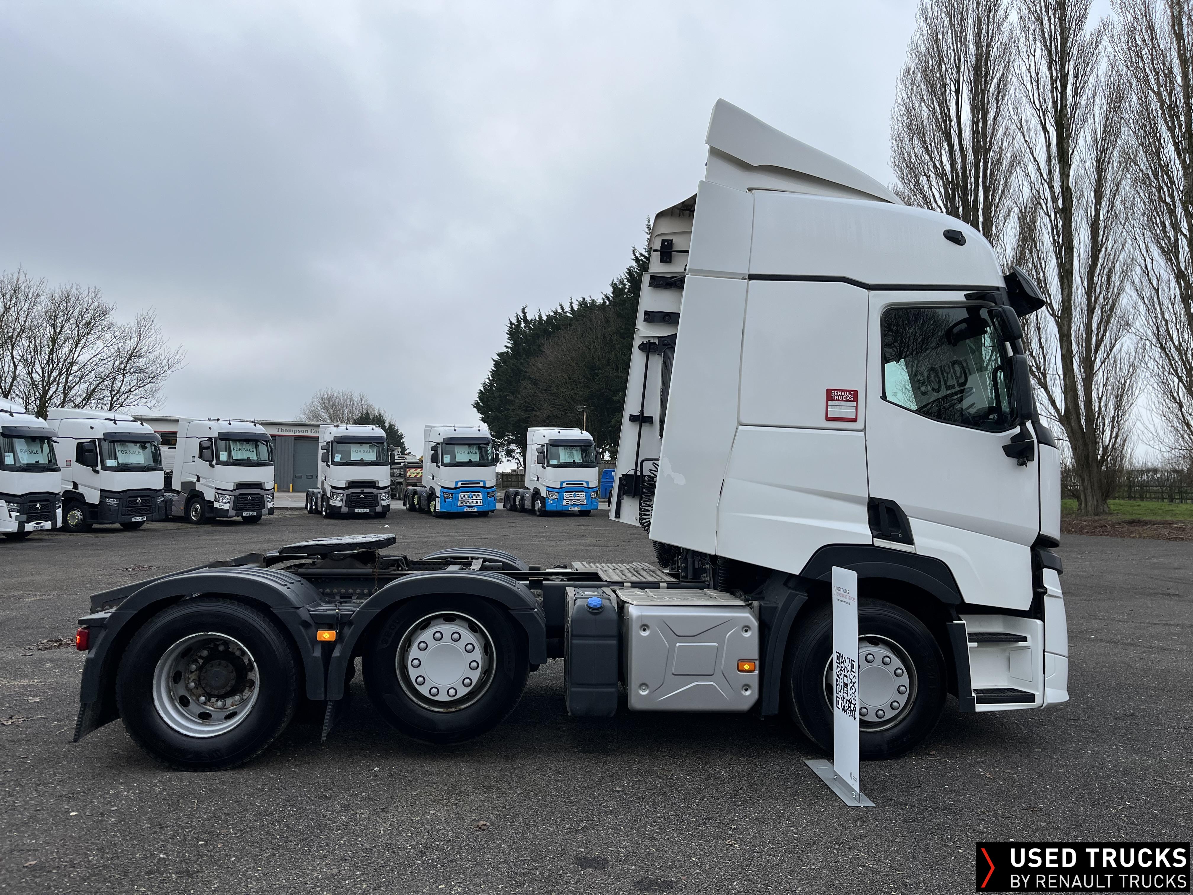 2021 (71) Renault T 480 Evolution TML 6x2 Tractor Unit, with just 471,256kms. Sleeper Cab, 13 LTR 480 BHP Euro 6 Engine & Automatic Gearbox, Engine Brake, Fridge Fitted in Under Bunk Draw , Sunvisor, Cruise Control with Optiroll, Lane Departure Warning System, Emergency Brake Assist, Electronically Regulated Comfort Air Conditioning, , LED Cab Lighting, FM/DAB+ Radio with Bluetooth, 12/24V Sockets, Sliding 5th Wheel.